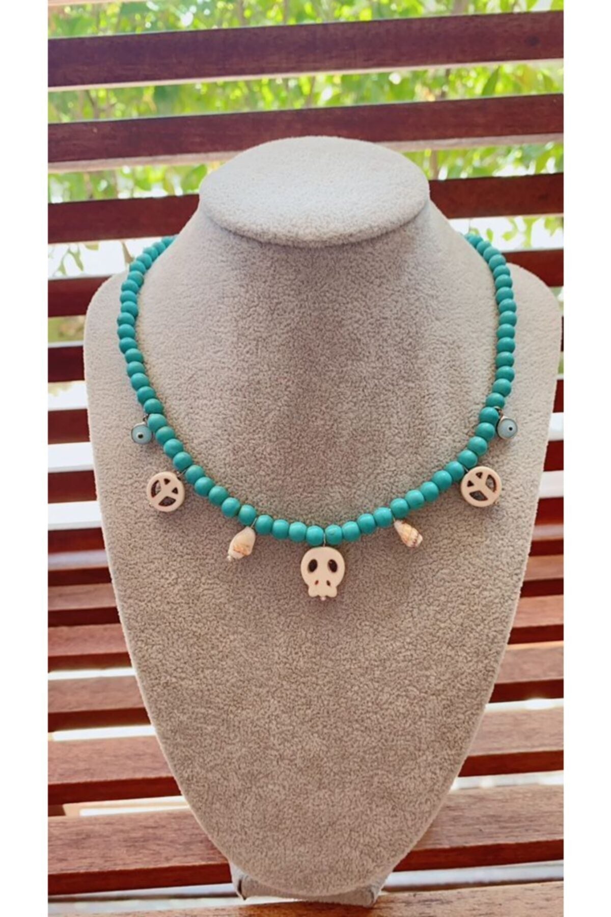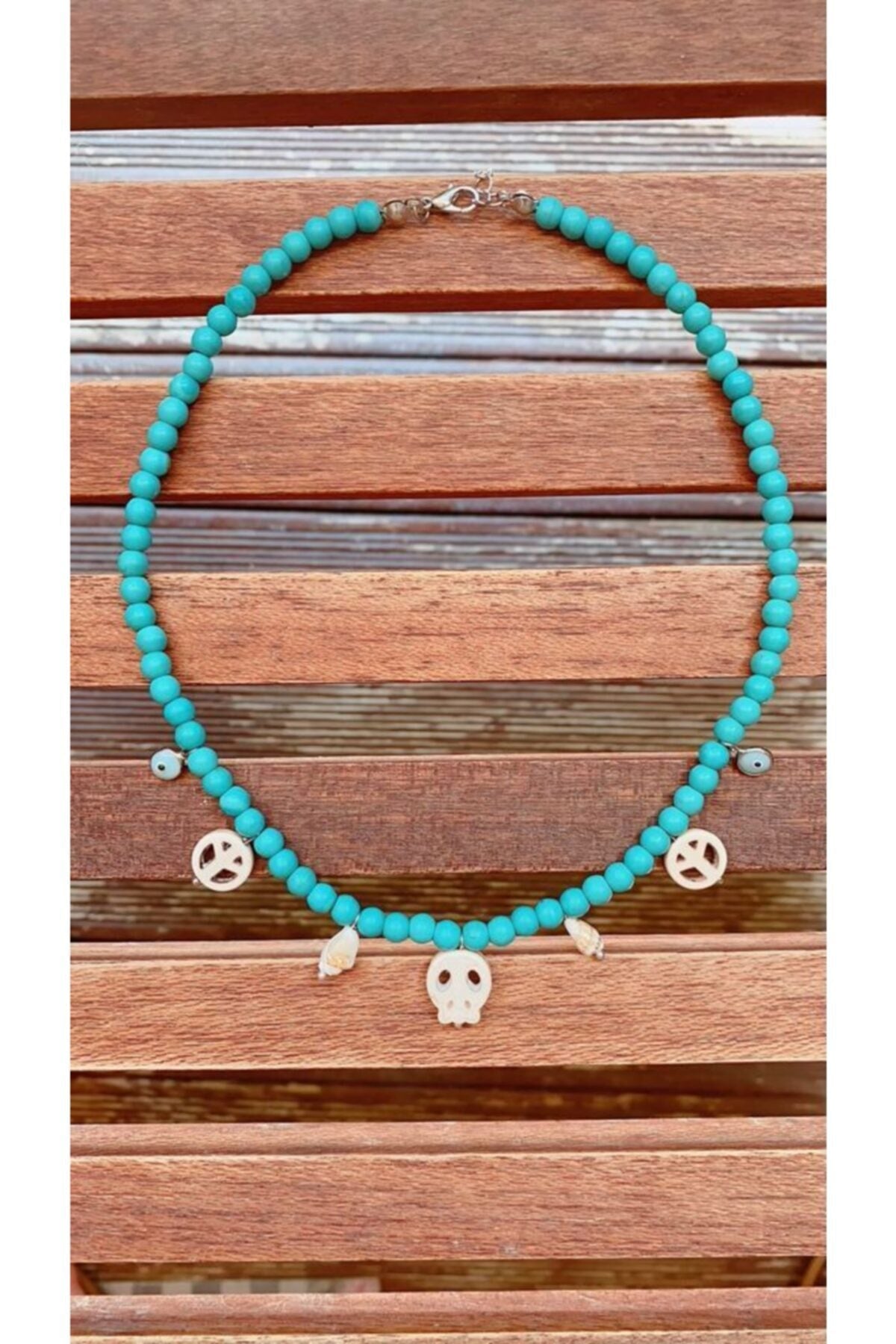 - Κολιέ με φυσική τιρκουάζ πέτρα και κόκαλο